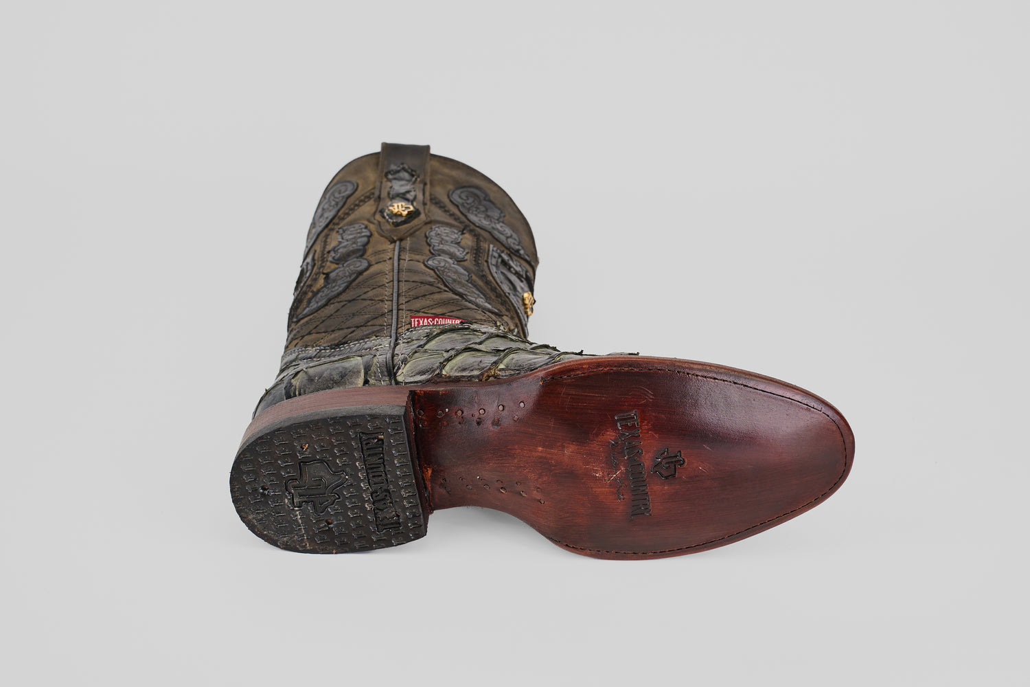 Discover the Conor - Charcoal - Roper Toe cowboy boots for men, crafted from unique fish leather for a look that stands out. Perfectly blending western flair with casual style, these boots are designed to elevate your outfits whether you're hitting the town or enjoying a night out. Embrace comfort and individuality with every step you take in these eye-catching boots!